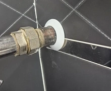 Способ монтажа: Обвод трубы одевается в обхват трубы, защелкивается и прижимается к полу.