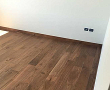 МДФ плинтус от компании "Лука". Перекроет зазор между стеной и полом до 16 мм.